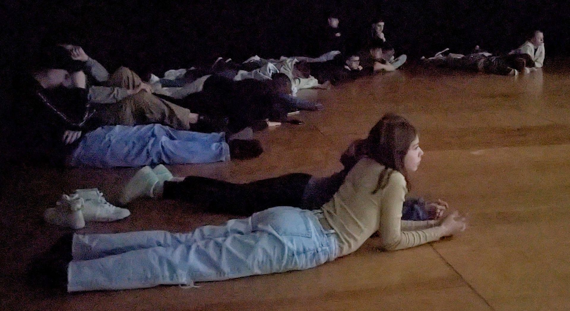 Schülerinnen in der Chillout Area auf der Aulabühne lauschen den fremdartigen Sounds...