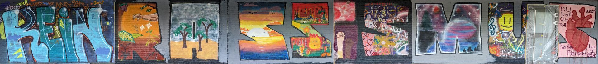 Die Umgestaltung der WC Wände des C-Gebäudes entspricht genau dem Geschmack der Schüler. Viele stehen staunend jeden Tag vor der Absperrung und bewundern die mitunter filigrane Gestaltung. Der Artist Case möchte die Schulgemeinschaft mit der Gestaltung der Buchstaben herausfordern. Zum einen sollen sie schauen, wie man einen Auftrag umsetzen kann. Zum anderen werden sie aufgefordert, Problemlösungen selber zu erarbeiten. „Sie sollen merken, dass sie auf sich selbst gestellt sind und überlegen, wie ich an mein Ergebnis kommen kann.“