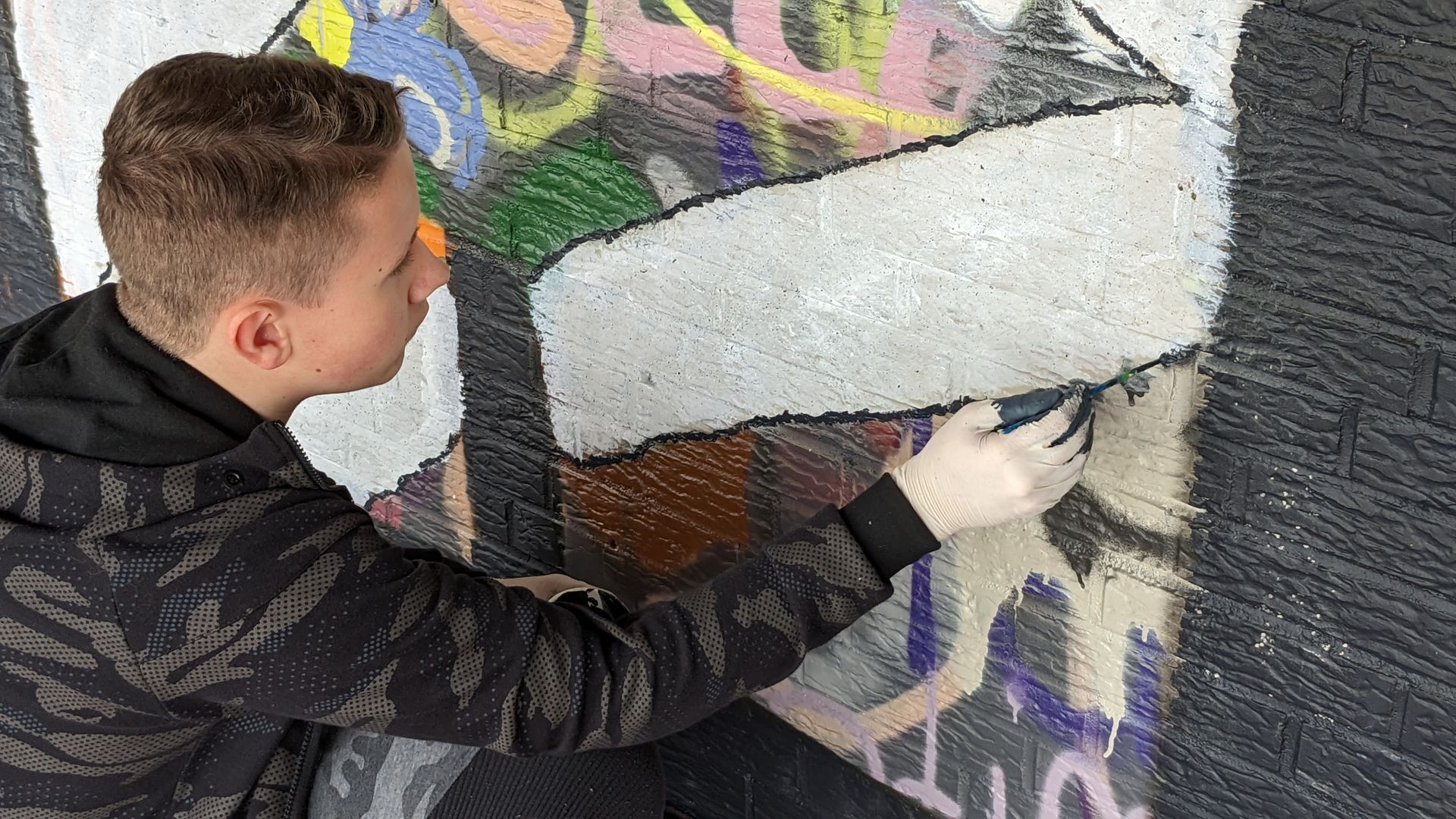 Graffiti-Star arbeitet mit Schülerinnen und Schülern des 8. Jahrgangs