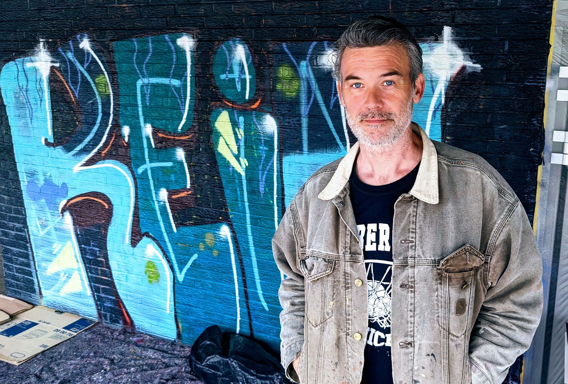 Case Ma' Claim: international renommierter Star der Graffiti-Szene vor der Wand gegen Rassismus unserer Schule...
