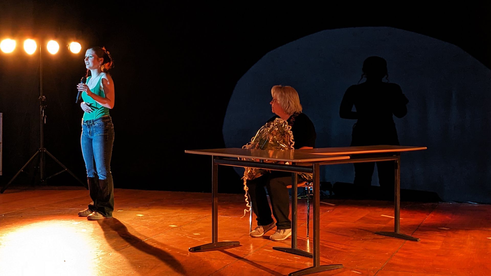 Bühnencrew und Piblikum lauschen andächtig „Read all about it“ Gesang: Saira, Klavier: Yesieniia (Jhg 10)